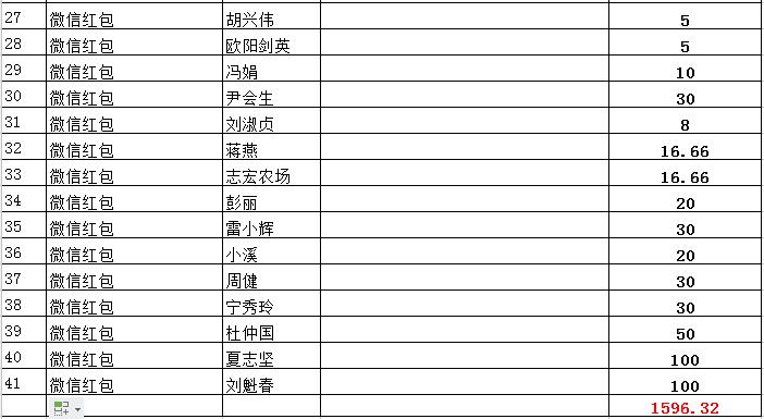 一、网上、微信红包捐款 (收入)